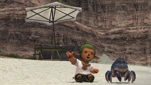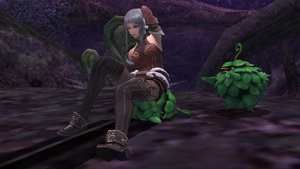 - Lors de la quête « Mauvaise graine », Erisa portait dans les voies d’eau de Rala des vêtements différents de ceux qu’elle portait au moment de son apparition à Adoulin Est.