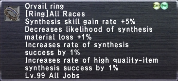 Chocobo Shirt / Craftkeeper's RingPre-adjustment: Reduces rate of synthesis failures