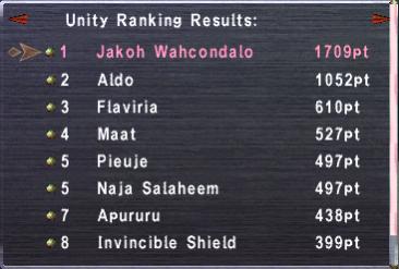Unity rankings are tabulated and announced every week (Earth time). Rankings are decided based on an average of the individual evaluation of all Unity members during that week. This individual evaluation is calculated at the rate of one point per 1,000 accolades.