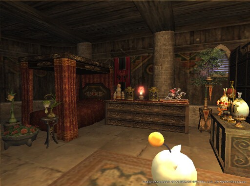 Introduction: Welcome to Never's Windurstian Retreat. What a better way to put your feet up and relax after a long day's work adventuring. Amenities include well lit areas, aquariums and chimes to soothe the mind and body, a luxurious bedroom secretly hidden behind a resplendent study, and all the delicious delights that mog is famously cooking every day in Never's kitchen. This house praises good food, relaxation, and always having something to read.