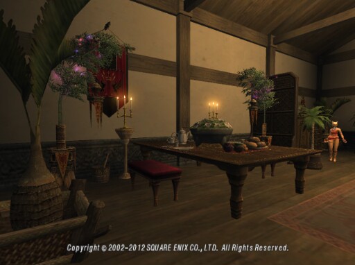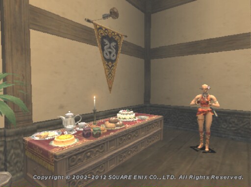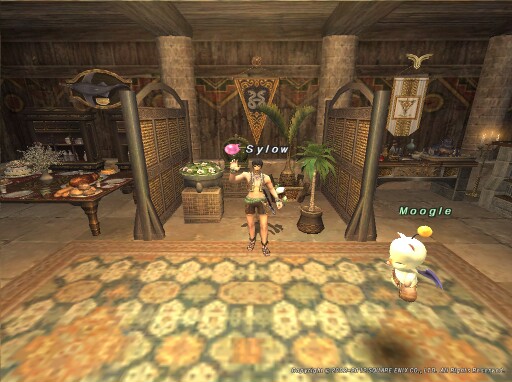 Welcome everyone to my Mog House! I hope you enjoy your stay and the layout I have created. My Mog House feels just like home to me, and I hope it makes you all feel right at home too! Come on in and cool off from the hot summer heat. Relax to the sounds of the fountain and the rings of all my wind chimes. Treat yourself to some tea, cookies, cake, or a slice of Mock Hare. Every furnishing reminds me of all the wonderful memories I have shared with all of my friends, and now I share them with all of you.