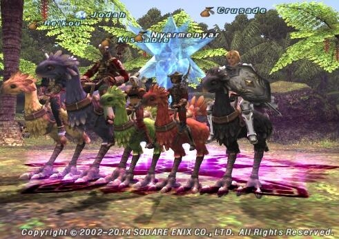 Description: Years ago our ls had fun raising baby chocobos, we took a screen shot as a final /salute before some of us took a break. Luckily most of us have returned for more fun!