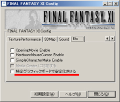 12月13日(木)のバージョンアップで、本症状への対策として、"FINAL FANTASY XI Config"に設定項目の追加を行います。