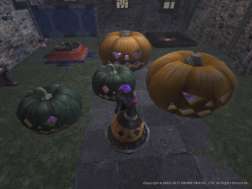 ・アピールコメント:フレに送られてきた複数のカボチャランタン。あれ?同じ家具なのにサイズちがうね?私も複数おいてチェックしたい!