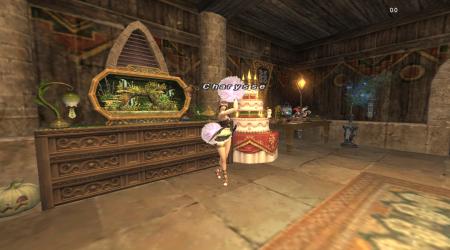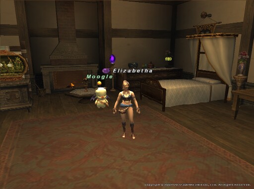 Welcome. Here is my cozy kitchen with tea service. Next to that, an area to read, study, or just contemplate. Across is my display room where I can recall adventures in exotic locales. At the back is my bedroom & closet. Most of the decor is of my home nation. Much of it I either quested or crafted over the years, creating the atmosphere of a lived-in home. I even caught my two goldfish, Bubbly and Bernie. They remind me of those cool breezy nights in Rabao. Thanks for visiting.