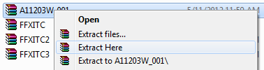 Step 3: In your "moogle_0" folder, select the A11203W_001.zip file, right click and choose Extract Here