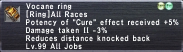 * The help text for the Vocane ring erroneously reads “Damage taken II -3%” instead of “Damage taken -7%.” (Added on 11/10/2014)