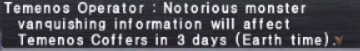 - You can now check the time until the treasure chest is refreshed within the menu that is displayed when talking to Temenos Operator and Apollyon Operator in Limbus.