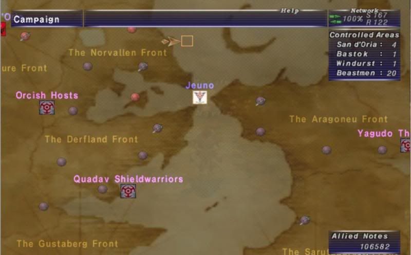 On odin, this weeks tally for campaign zones is Sandy:4 Bastok:2 Windy:3 - Beastmen:17