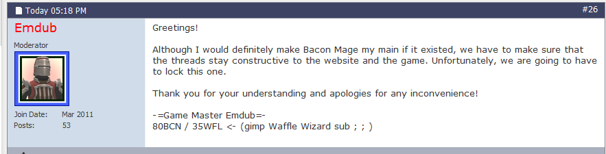 Very understandable why he can't divulge his identity in game; this isn't ffxiah or bg or ki or anything, they need a certain level of professionalism.