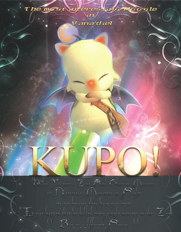 When faced with the most notorious of monsters of Vana'diel he defeats them with a single One Inch Punch from the comfort of his Mog House.... He is the most interesting Moogle in Vana'diel!