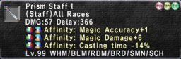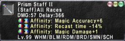 In comparison this would be the case for Magic Accuracy II Staves, same as above except M.Acc+6, MAB+1, and casting time -14%.