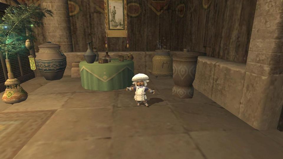 Introduction: Welcome to Never's Windurstian Retreat. What a better way to put your feet up and relax after a long day's work adventuring. Amenities include well lit areas, aquariums and chimes to soothe the mind and body, a luxurious bedroom secretly hidden behind a resplendent study, and all the delicious delights that mog is famously cooking every day in Never's kitchen. This house praises good food, relaxation, and always having something to read.