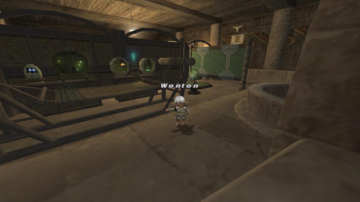 Hello, and welcome to my moghouse on Ragnarok. I wanted to create something that would bring my favorite place (the jungle) indoors and that would also show a hint of the hunters' aura. Complete with a hammock, stockfish and display blades, there is a collection of my pets which I have gathered from the hot jungles of Yuhtunga and Yhoater. The sound of chirping crickets I can't get enough of- while glowing fireflies, Totem poles, Elshimo palms and pachira remind me of the hot summer days and evenings - all year 'round.