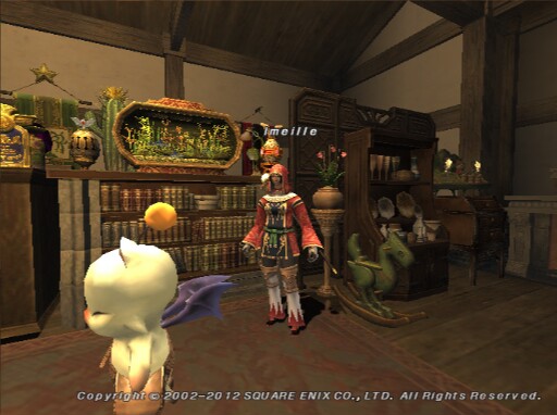 My Moogle is a bit of a hoarder. "What? Oh, sorry, he prefers "Collector"." He has been storing and displaying every piece of reward and event furnishing imaginable since the NA PS2 release. He seems to be happy year-round surrounded by his memories and celebrating any holiday at any time. He just wishes there was more space!