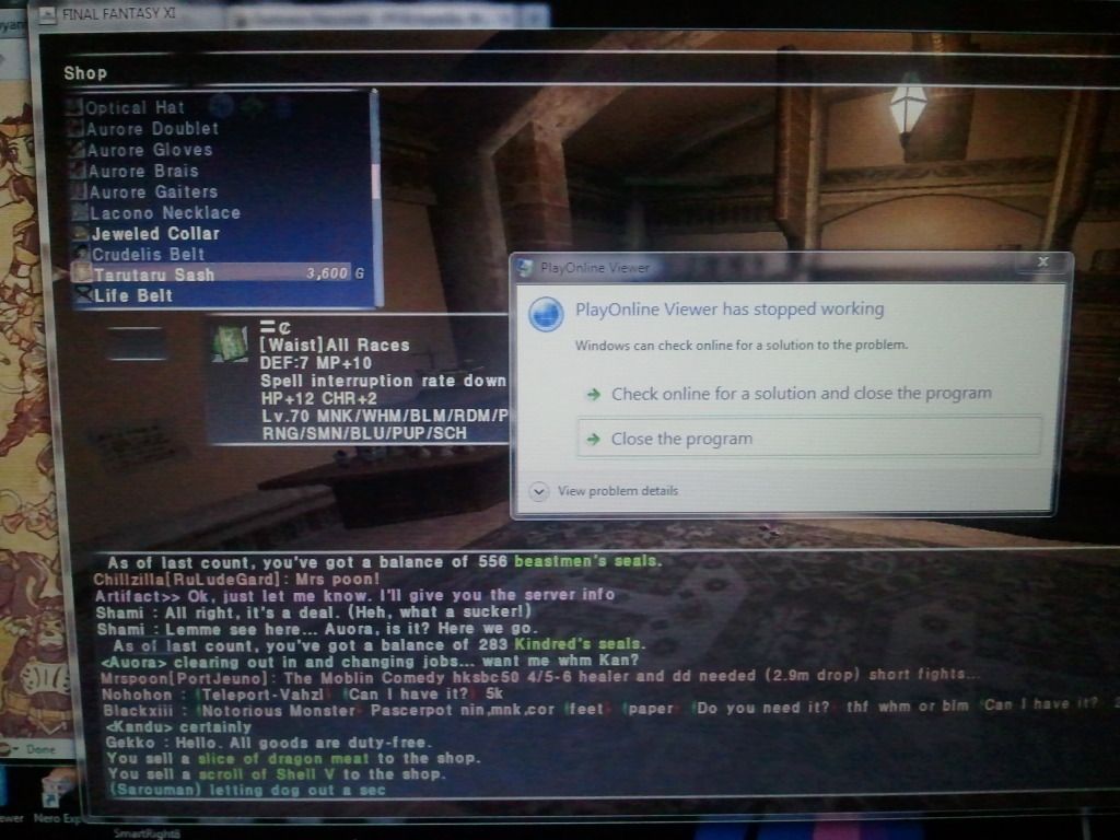 2. When I finished at the party and returned to Jeuno for an LS event, I traded my seals to Shami and headed down to the duty free shop in Port to sell all my things to Gekko.