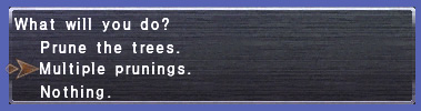 - The starting location of the cursor for the menu that is displayed when examining the Arboreal Grove and Mineral Vein gathering points in your Mog Garden has been changed.