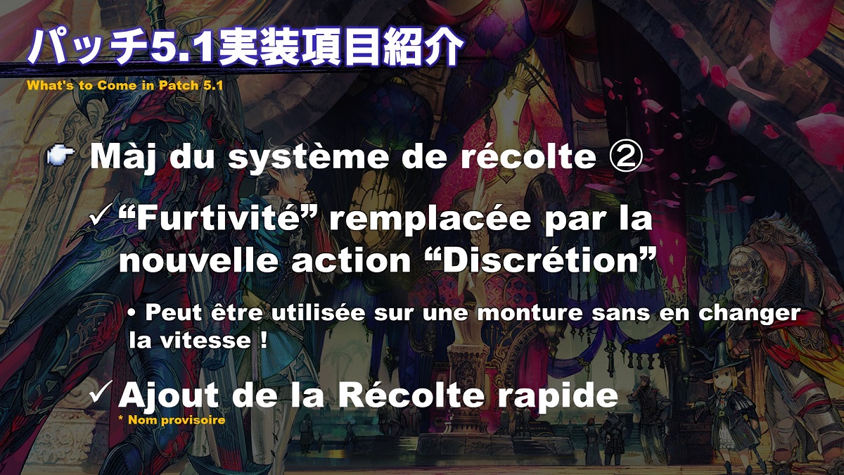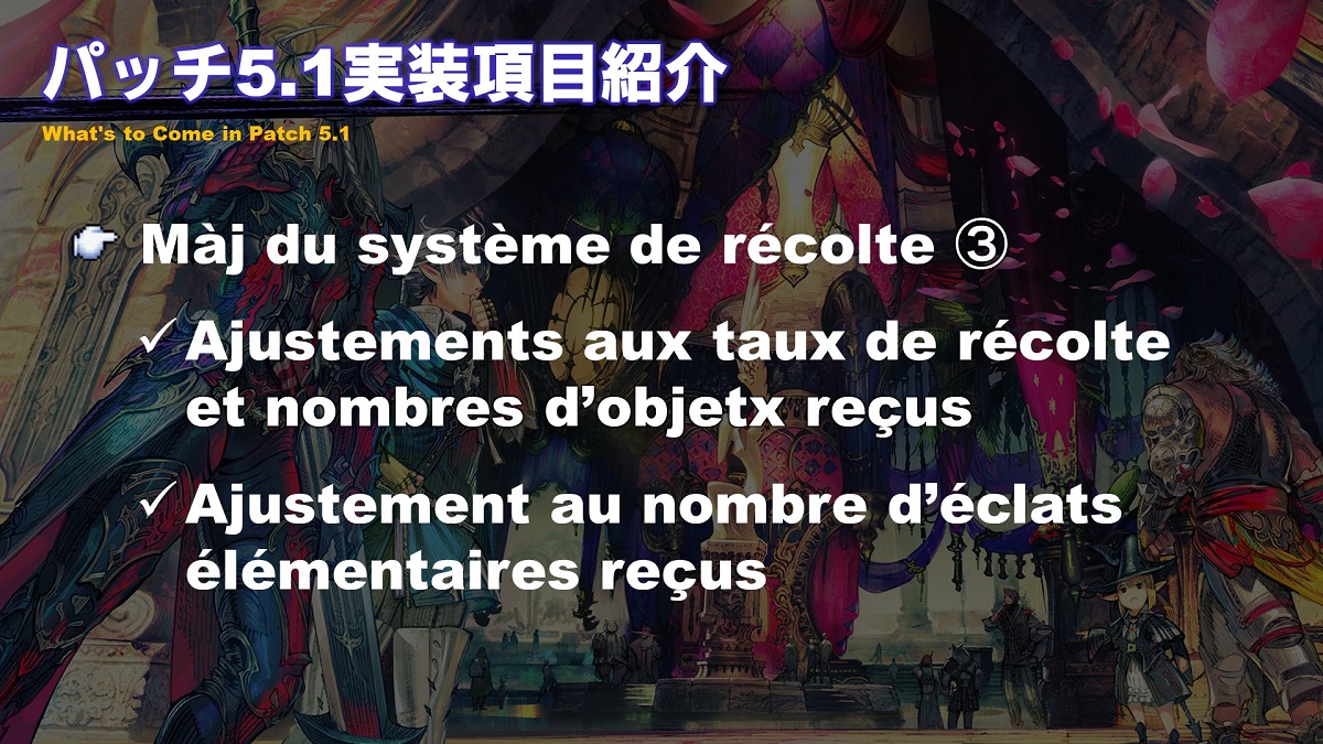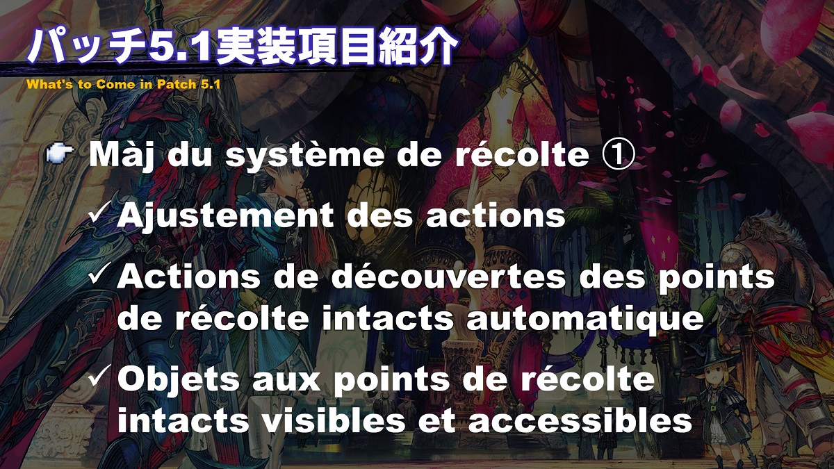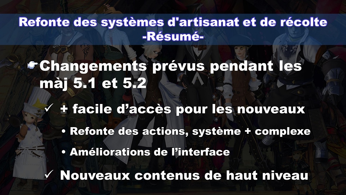 Bien que nous ayons reçu de nombreuses louanges concernant les systèmes d'artisanat et de récolte dans FFXIV, il leur a été reproché d'être difficile pour les nouveaux joueurs. Nous allons donc faire en sorte d'en faciliter l'accès.