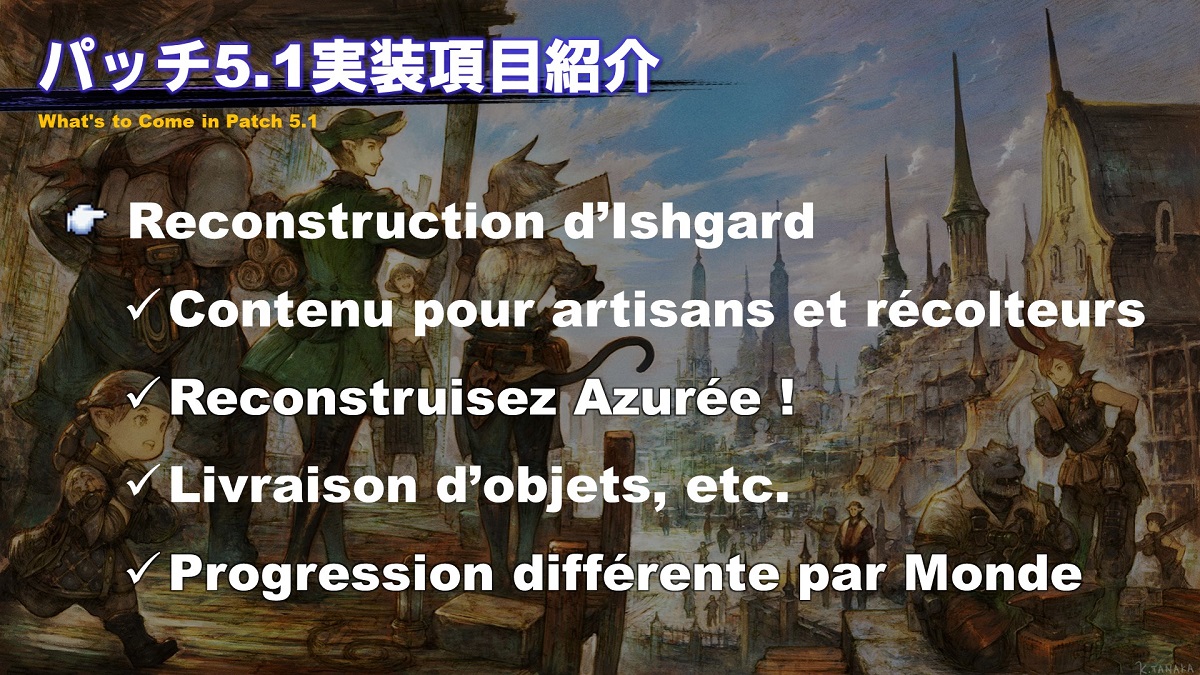 La reconstruction d'Ishgard est une nouvelle série de contenus pour disciples de la main et de la terre qui débutera avec la mà j 5.1 et sera mise à jour de façon régulière. Vous pourrez y contribuer de différentes façons, notamment en livrant certains objets afin de participer à la reconstruction d'Azurée !