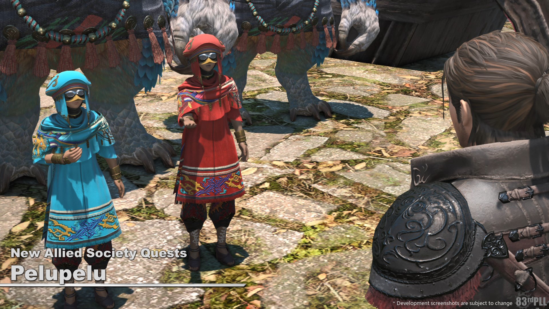 The Pelupelu quests will be for Disciples of War and Magic. There are quite a lot of jobs now, and so we hope these quests will give you another option for leveling them up. The EXP rewards per level will be similar to those of the 6.x allied society quests. They’ll be available as daily quests and may be a convenient means of leveling when you can’t sit down and play for extended periods of time.