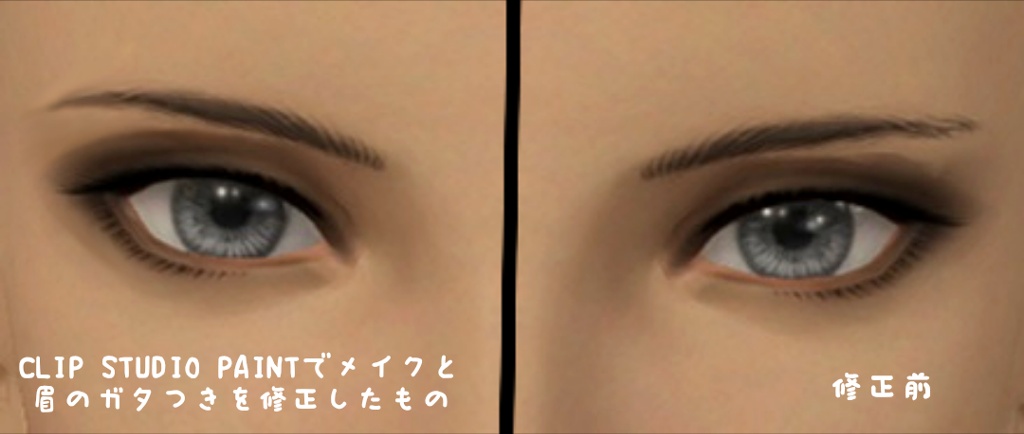 ブラックアウトするまで濃いラインの幅は5分の1ほどしかありません。(たぶん眼球の上にかぶせる半透明の伏し目まつげポリゴンの不透明度が下がったせいもある)