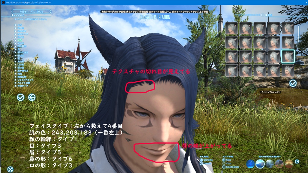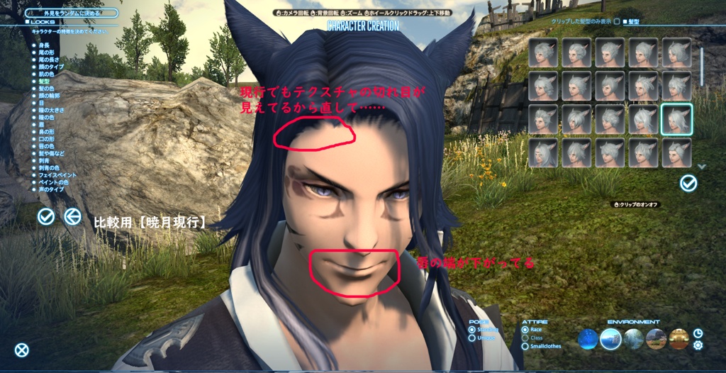 現状のキャラと比較してみてミコッテ♂で気になった点を2つ記載させて頂きます。