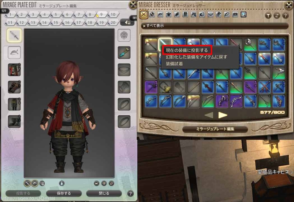 以降は武器の更新した時だけドレッサーに戻って右クリックで投影すればOKです。