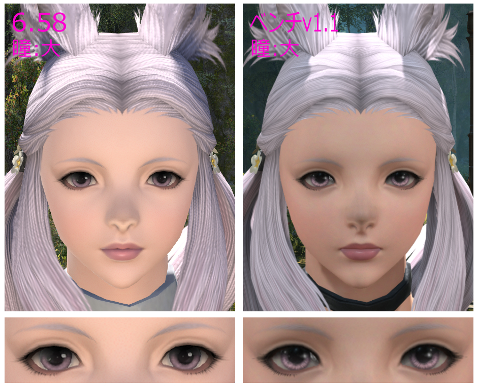 どちらもマイゲーム設定でガンマ値20、ソフトシャドウ弱く、影にLODを有効