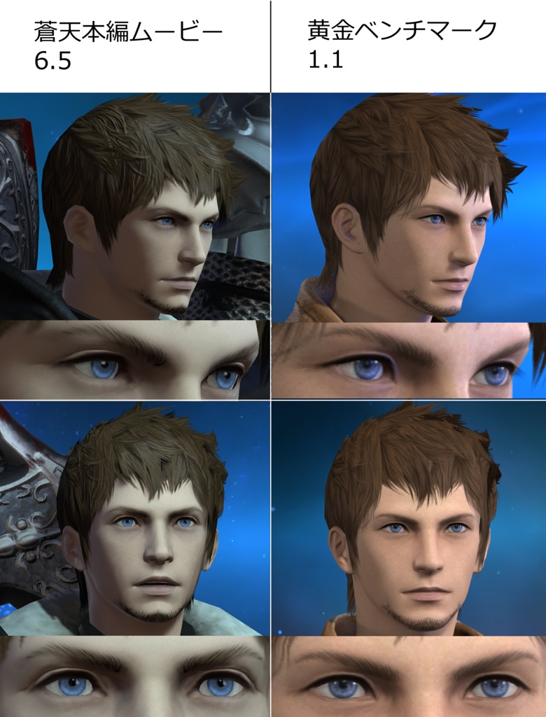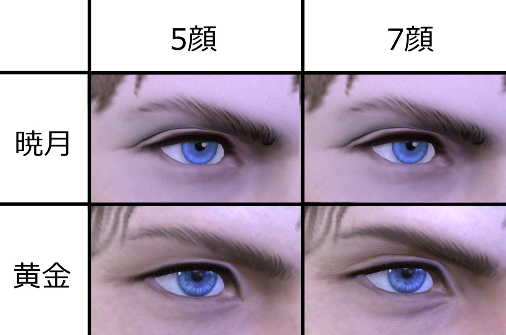 黄金の方では暁月で作ったキャラクリをそのまま読み込んだ状態になります(色等変更一切なし)