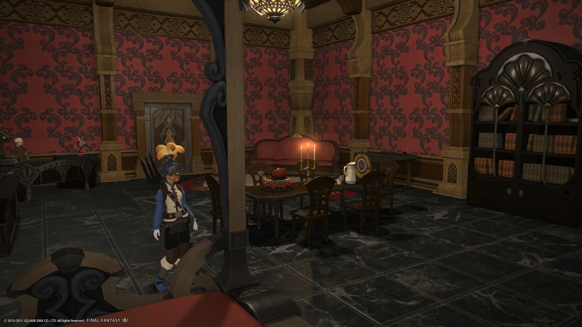 To the left of the entrance (which is flanked by two Chocobo pillars) is the kitchenette/eating area! Yes, even Roes can fit at that tiny table.