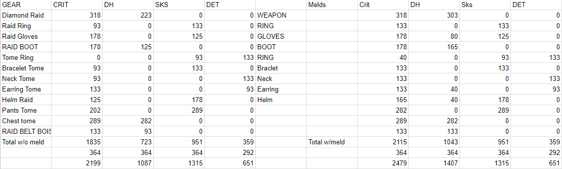 Wobei ich sagen muss: Ich erreiche aktuell mit Craftgear und (da ich etwas Glück hatte) 370er Stiefel knapp 2,1k Crit, 640 Det, 1420 DH und 1180 SKS.