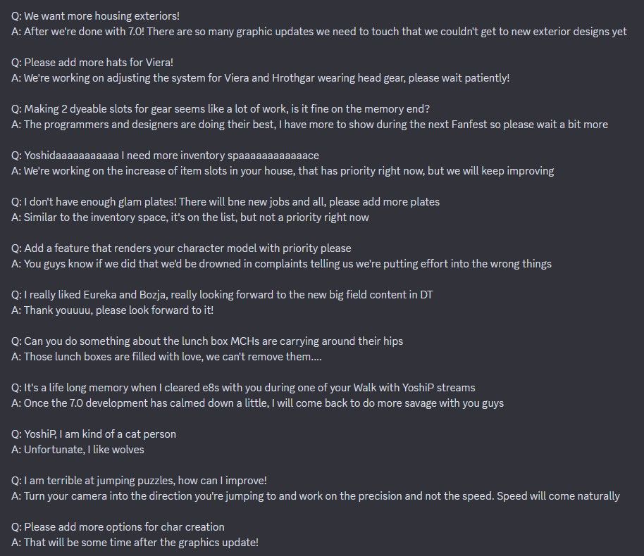I would love to be proven wrong, and to be shown differently, but years of following Live Letters and the game's development seems to make this clear. While it gives the game a sort of underdog credibility, it also isn't good optics for a company to take their best-selling product (which IIRC made nearly a quarter of their yearly revenue in the fiscal year of Endwalker's release) and neglect it in favor of risky ventures like consistently-failing mobile game development.