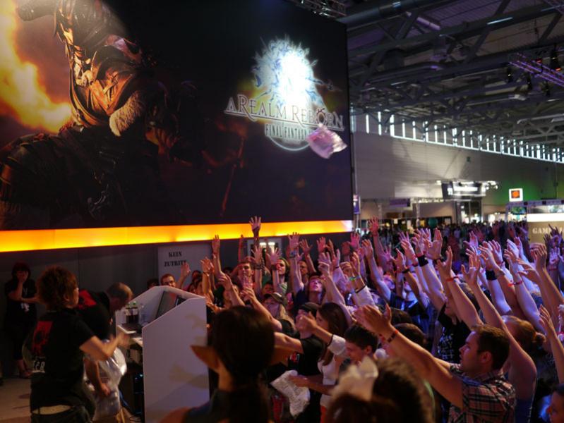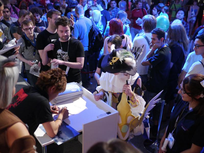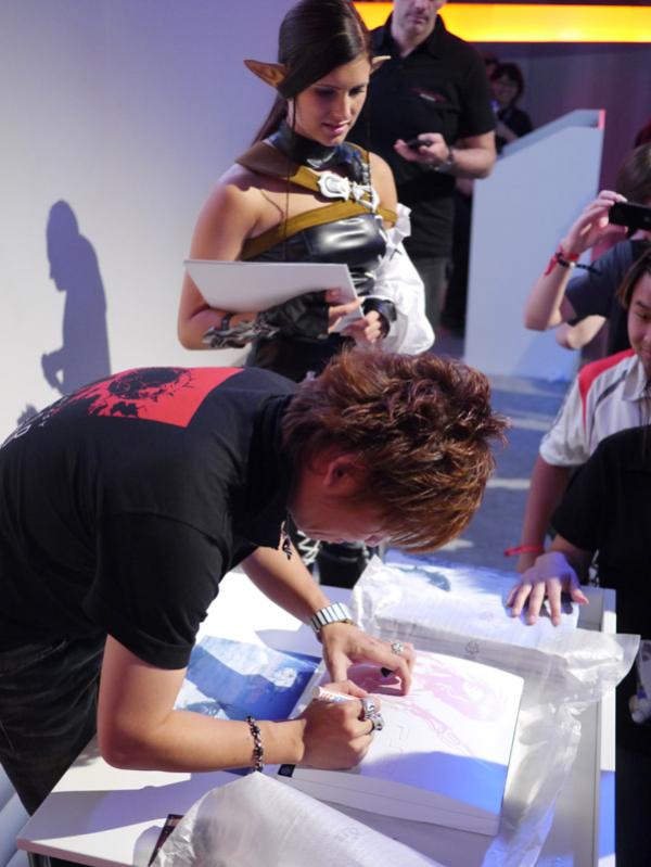 gamescom4日目、プレゼンテーションに加え、サイン会の実施、ミコッテの合流としてスクウェア・エニックスブースは大賑わいです。