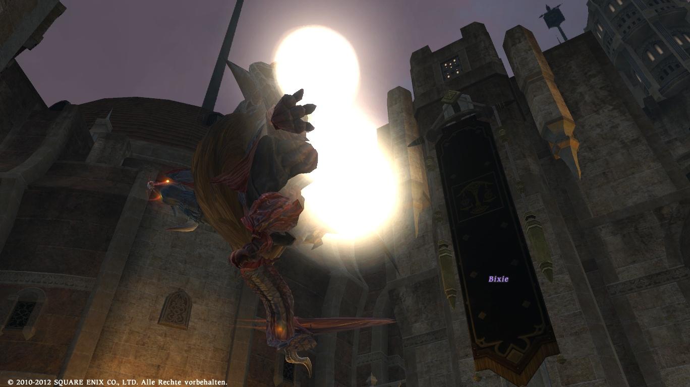 Oh, und Bixie ist in Ul'dah die Wand der Abenteurergilde hochgekrabbelt :D