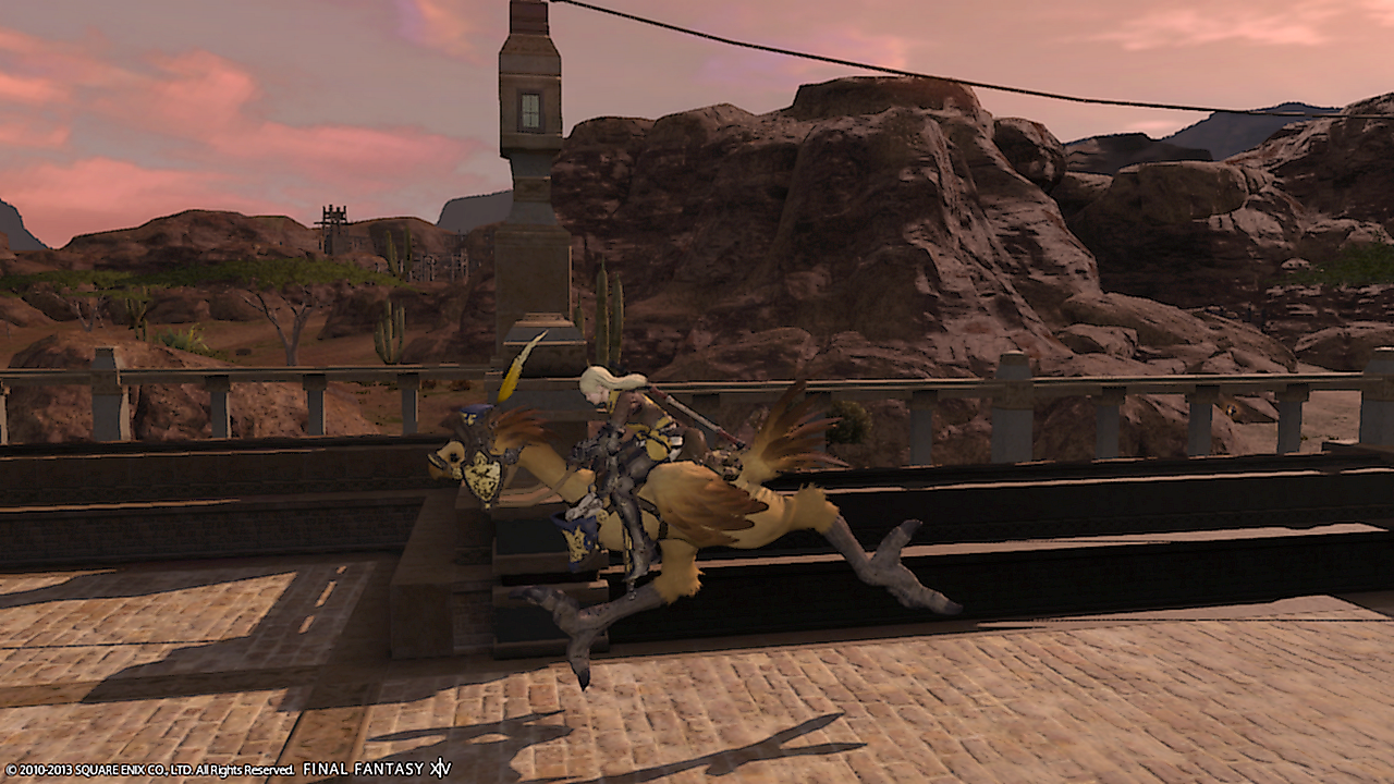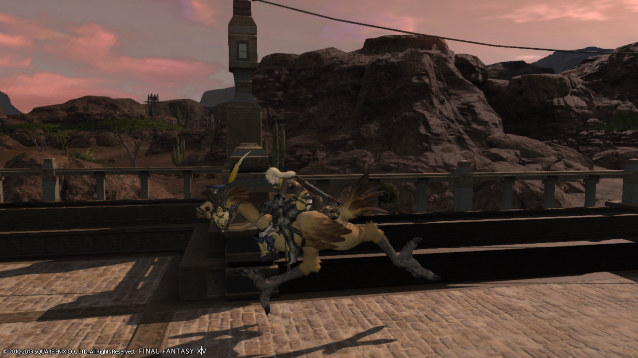 そんなわけで今回はチョコボ騎乗中のキャラをロング撮影したものから成功した例の一枚をご覧下さい。