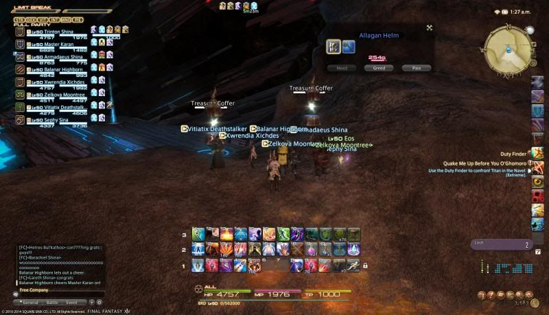 Ostensia <OSG> currently has one static team working on Twintania and Extreme Primals. During our Unbroken team's Wednesday Turn 1-4 clear on 1/22/14 we were able to one shot each encounter and head over to Ultima's Bane for those who needed it. It was a fun night!