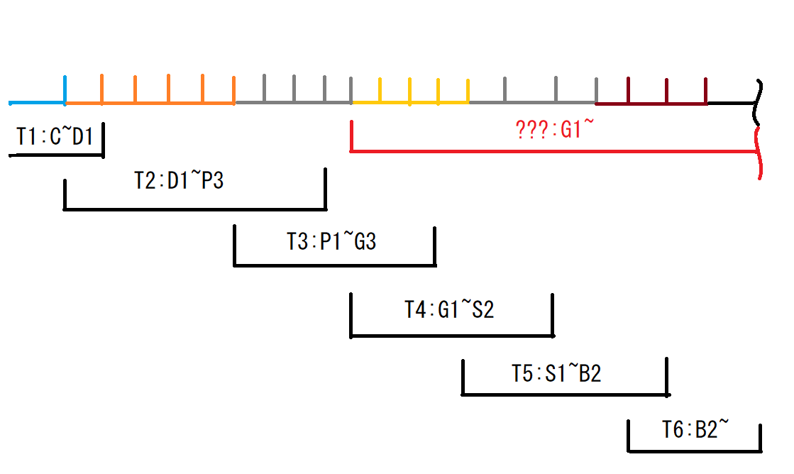 今自分がG2なので、P1~G3の上の試合か、G1~S2の下の試合に入ります。