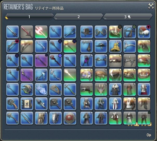 リテイナーのレベルを上げる、装備をさせる仕様の場合、一覧で確認できないと装備交換の時に、どのリテイナーかわかりづらく、結局1つ1つ中を見ないとならないのがとても不便です。