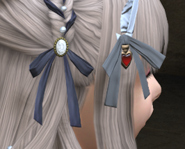 ハーフツインのリボンと並ぶとブリムのリボンが白っぽくなってしまっているのが良くわかります