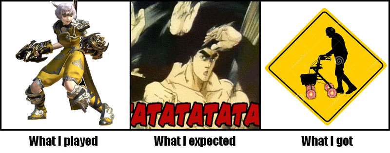 This is why I still like my panda monk in WoW more, you get the middle part there along with more over the top fighting game style moves and high mobility.