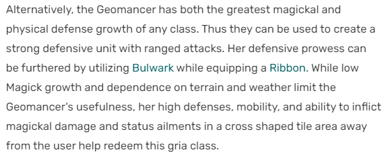 Oh, and as for the 'offensive caster' geomancers we fought, you mean the ones in Swallows I assume, the ones that 'summon adds' and 'attack with reskinned WHM skills'? The only thing that stood out about them was the incessant bonging of their bells, and the ones in the tunnel. The ones who use a skill that we learn as BLU, so they don't exactly have any claim to uniqueness either. Not exactly much to make a job out of, but hey, they managed to make AST from the scraps of what they tried to make into Chemist, and one single move from FFT, so anything's possible I guess. But based on what I remember, I'd argue it's fairly open what role it becomes, and I'd prefer to see it as a tank, that's all. If there's more to it's lore that cements it as being a caster, then okay. Just means the lore was delivered in such a way that it sailed right over my head, which I guess isn't actually all that impossible, considering all the 'tatame-bato' and not-Monkey-King stuff. Maybe I was mentally checked out of the Four Lords lore the whole time