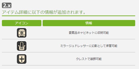 アイテム詳細に ドレッサー と 箱に入れれるか のマーク付いて解りやすくなりましたが