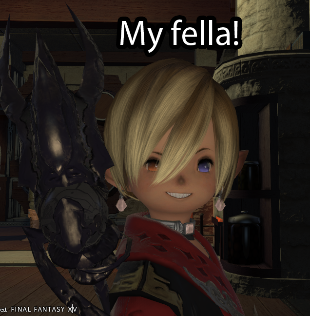 When another lalafell does something awesome: Look at them and smile then proceed to say: "My fella"