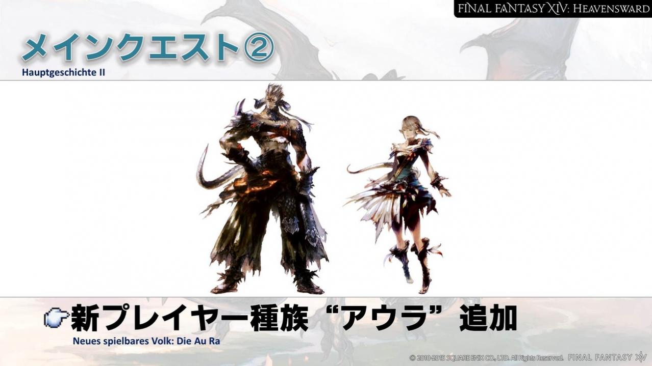 A: Bei unserer Ankündigung, dass es eine neue spielbare Rasse geben wird, haben wir noch nicht erwähnt, dass es auch bei den Au Ra zwei unterschiedliche Clans gibt: die Raen und die Xaela. Die Raen haben schon lange enge Beziehungen zu den Einwohnern Domas, und auch deren japanisch klingende Namen übernommen. Die Xaela dagegen sind ein nomadisches Volk und ihre Namensgebung entspringt einer ganz eigenen Konvention. Wir werden Genaueres dazu in späteren Ankündigungen verraten, damit auch die Hardcore-Rollenspielfans die Möglichkeit haben, sich passende Namen auszudenken.