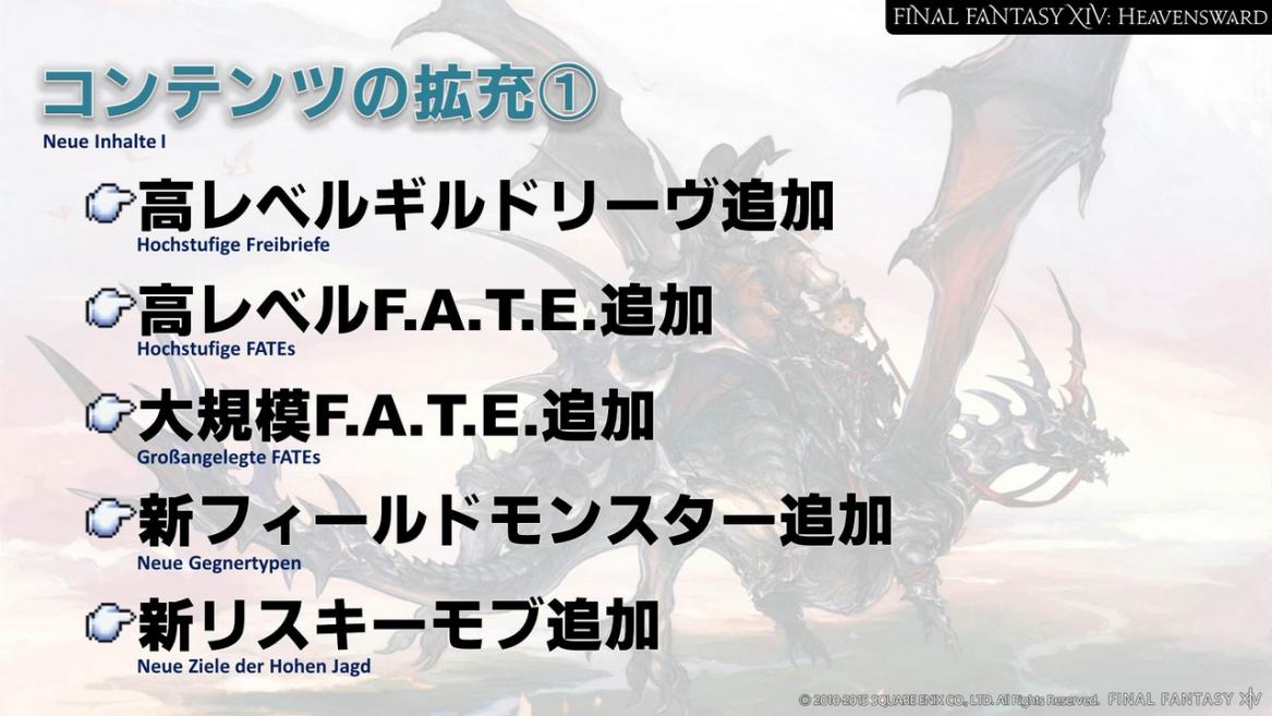 Wir implementieren auch neue, hochstufige FATEs in allen Arealen und natürlich die heißersehnten neuen Reittiere.