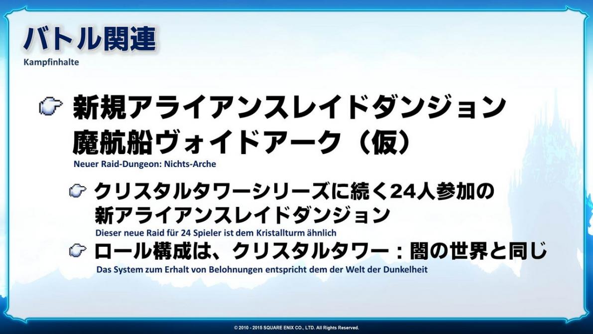 Wie ich bereits erwähnt habe, ist das das neue 24-Spieler-Dungeon. Die Gruppen bestehen aus einem Tank, zwei Heilern und fünf DPS. Die Atmosphäre unterscheidet sich sehr von der des Kristallturms und wir haben einige aufwändige Szenen entworfen. Seid gespannt!