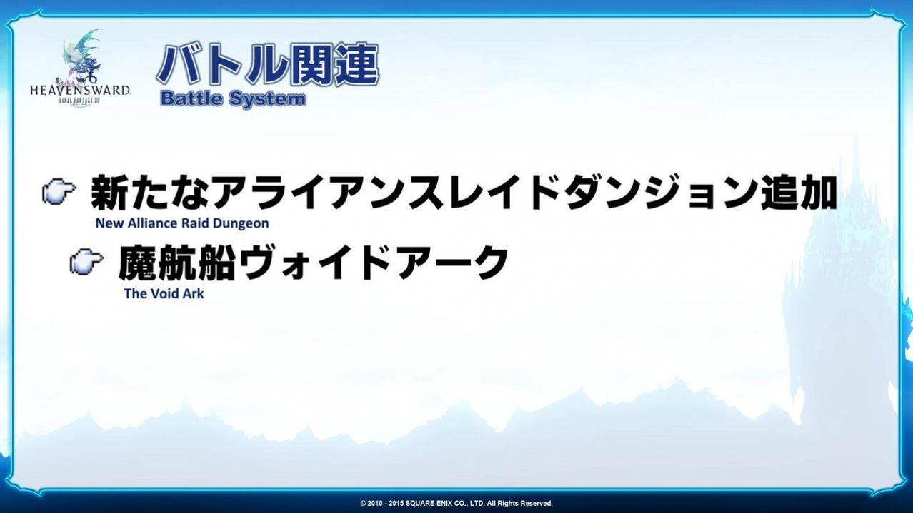 The next 24-person raid to follow the Crystal Tower series is the Void Ark. Instead of exploring gradually making a climb to the top like in Crystal Tower, you’ll be exploring through the interior of the Void Ark. You’ve noticed that Diabolos, who made an appearance in the Lost City of Amdapor, is back pulling the strings, so look forward to the unraveling the story.