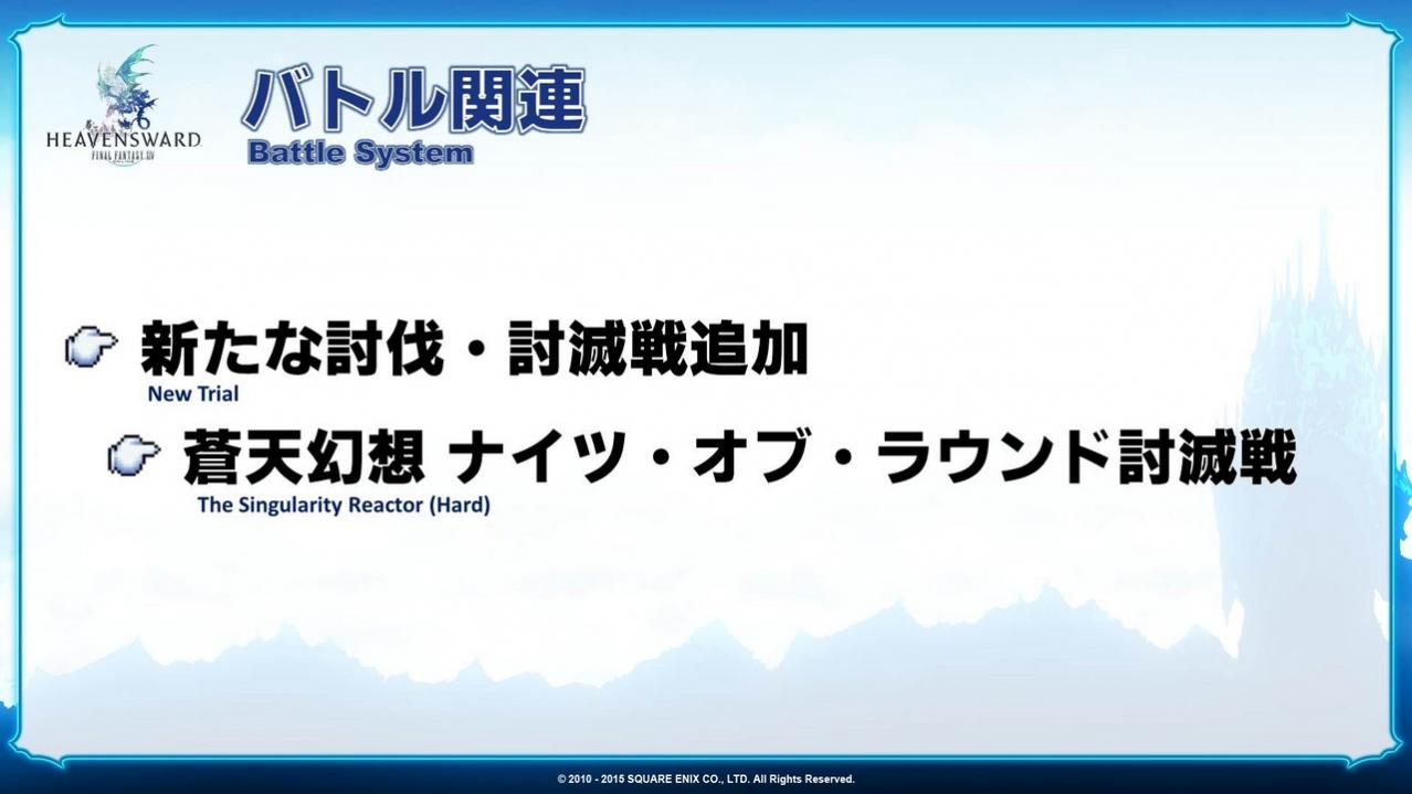 We’ve been receiving questions about this, but unlike the Minstrel's Ballad: Ultima's Bane, the Minstrel’s Ballad: Thordan’s Reign will be closer to an extreme difficulty. It will be harder in difficulty than Thok Ast Thok (Extreme), and while it won’t be as hard as the latter areas of Alexander Gordias (Savage), the difficulty will be somewhere in between Alexander Gordias and the early areas of Alexander Gordias (Savage). While the total DPS needed to clear this content has not been set very high, there will be 10 phases that are exciting and fun. Originally we were planning to make 13 phases since it’s Knights of the Round, but this seemed a bit overboard, so we cut it down to 10. Also, we originally recorded voices for the battle that we were going to put in for the 3.0 fight, but we had to lower the difficulty for the scenario, and we’ll be adding these into the new battle in Patch 3.1 where the knight’s other than Thordan will play a larger role. Reward-wise there will be weapons you can obtain that will help with Alexander (Savage), but I can’t tell you the item level just yet.