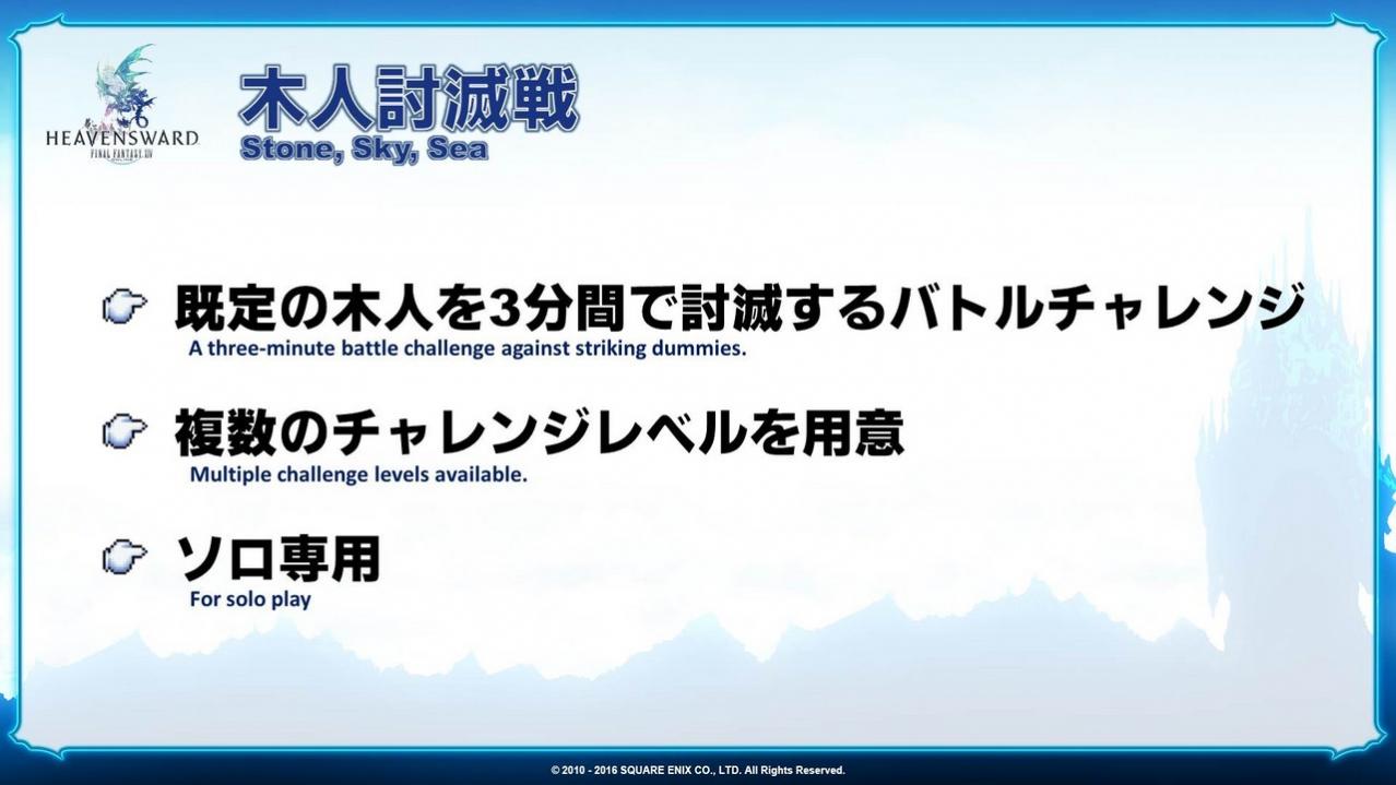 At the very start of the stream I was showing this off a bit, and I was challenging a striking dummy designed for Alexander: Gordias, The Burden of the Father (Savage) as a black mage. Stone, Sky, Sea will allow you to select challenges corresponding to the most difficult battles in the game. Because DPS requirements vary from role to role, you can use these challenges to check your DPS before diving into the actual battle. Naturally, this includes the newest content that will be implemented in Patch 3.2, and once unlocked you’ll be able to undertake their associated challenges in Stone, Sky, Sea. For example, once you've cleared Alexander: Midas (Normal), you'll be able to undertake a challenge in Stone, Sky, Sea applicable to Alexander: Midas (Savage).