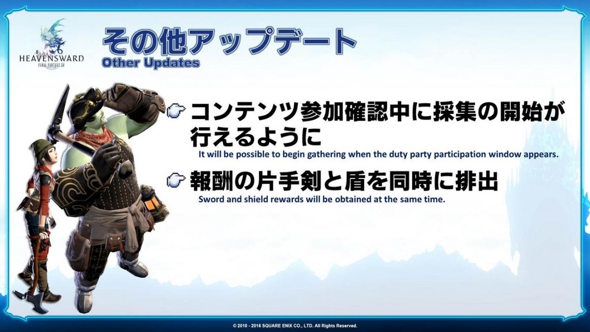 We’ll be making adjustments to the actions of each job. With the change in calculating physical attack power for tanks, we’ll also re-examine the values of the offensive and defensive stances for each of the three tank jobs to make further adjustments. In particular, we’ll be making adjustments to the offensive and defensive aspects of paladin, which we have received a lot of feedback on. In addition, we’ll be making overall adjustments to actions that are difficult to use.